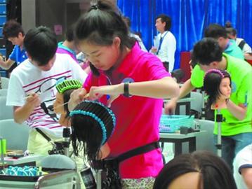 上海商業(yè)學校學生林璐璐獲得美發(fā)與形象項目金牌。她說,知道成績的那一刻,想到的第一個詞就是“感謝”,“沒有老師的貼心照顧和悉心指導,我甚至都沒機會參加比賽”。由于美發(fā)需要實戰(zhàn)操作,全校不少老師主動捐獻頭發(fā),老師的信任給了她們鼓勵。