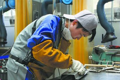 鈑金項目又苦又累,為了操練技術,楊浦職校等參賽學生,在集訓期間用了兩三噸鋼材,敲打、焊接,過程枯燥乏味,學生甚至出現(xiàn)手指肌肉勞損、抬不起手臂等狀況,仍然堅持。一名參賽學生說,專業(yè)老師周志巍整天陪著他們練習,一大早坐8號線頭班車,從浦東穿越大半個上海到浦西,再乘末班車回家,“老師為了我們都能堅持,我們更沒理由放棄。 ”周老師說,做鈑金工雖然辛苦,但市場需求大,薪資待遇也不錯,參加大賽可以磨練技術,以后學生就業(yè)前景更好。