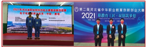 技能大賽在很大程度上能夠鍛煉學(xué)生的膽量、勇氣、不服輸?shù)木?,提高教師的專業(yè)技能水平,進(jìn)而提高教學(xué)質(zhì)量和學(xué)生的技能水平。我鼓勵(lì)學(xué)生參加大賽,2018年,我們參加全國(guó)教學(xué)能力比賽獲得省賽二等獎(jiǎng)、國(guó)家級(jí)三等獎(jiǎng),另外2019年指導(dǎo)學(xué)生參加技能大賽獲唐山市團(tuán)體二等獎(jiǎng),一路走來(lái),我的專業(yè)技能水平在迅速提升,我的教學(xué)質(zhì)量在迅速提升,我還通過(guò)省級(jí)培訓(xùn)考試,取了電子裝接的技師資格。同時(shí)我也鼓勵(lì)學(xué)生參賽,2019年指導(dǎo)學(xué)生參加唐山市技能大賽,獲得團(tuán)體二等獎(jiǎng),學(xué)生分別獲得個(gè)人三等獎(jiǎng),2020年我們班的陶慧洋、董馥銘參加河北省電子裝接技能大賽分別獲得河北省一等獎(jiǎng)第一名、第二名的好成績(jī),2021年毛祥峰崔明理參加河北省創(chuàng)新創(chuàng)業(yè)大賽或團(tuán)體二等獎(jiǎng),尹書晗參加全國(guó)攝影大賽獲得優(yōu)秀獎(jiǎng)。