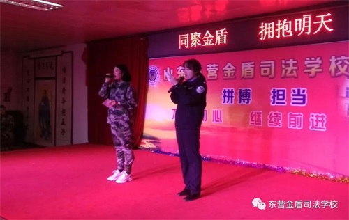 為了豐富春季班學員的軍訓生活,營造朝氣蓬勃的校園氛圍。3月28日19:00,在山東東營金盾司法警官學校藝術(shù)辦和文藝部組織下,春季班新學員在學校大禮堂觀看了一場主題為“同聚金盾 擁抱明天”的文藝演出。