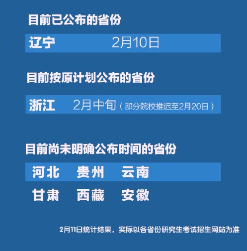 受疫情影響,湖北省教育考試院日前發(fā)布通知稱,考研初試成績(jī)公布將與湖北省高校開(kāi)學(xué)日期同步。截至目前,全國(guó)#多省推遲考研成績(jī)公布時(shí)間#,具體以各省研究生招生網(wǎng)為準(zhǔn)。