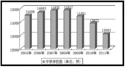 我國的中職教育規(guī)模巨大。截至2011年,全國中等職業(yè)學(xué)校有13093所,占高中階段總量的48%以上;中職招生人數(shù)占普通高中階段招生總數(shù)的49%。即便從世界范圍來看,我國中職生所占比例達(dá)到或高于發(fā)達(dá)國家平均水平,略低于歐盟21國52.4%,但高于20國集團(tuán)37.6%的平均水平,居于世界前列。