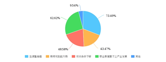 教師卷:您認為高職教育的根本難點在于?1509位受訪教師,73.49%認為是生源素質差,其次是職業(yè)教育跟不上產業(yè)發(fā)展。(制圖:魏其濛 張茜)