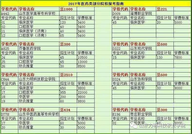 山東醫(yī)學(xué)高等??茖W(xué)校、齊魯醫(yī)藥學(xué)院、山東力明科技職業(yè)學(xué)院、棗莊職業(yè)學(xué)院、山東英才學(xué)院、山東現(xiàn)代學(xué)院、山東協(xié)和學(xué)院、棗莊科技職業(yè)學(xué)院、山東中醫(yī)藥高等專科學(xué)校、齊魯理工學(xué)院、菏澤家政職業(yè)學(xué)院、濟(jì)南護(hù)理職業(yè)學(xué)院、泰山護(hù)理職業(yè)學(xué)院、濰坊護(hù)理職業(yè)學(xué)院、山東畜牧獸醫(yī)職業(yè)學(xué)院、菏澤醫(yī)學(xué)??茖W(xué)校等。(其中:口腔醫(yī)學(xué)、臨床醫(yī)學(xué)、中醫(yī)學(xué)、針灸推拿可以考執(zhí)業(yè)醫(yī)師)