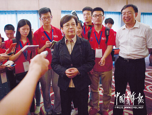 6月26日傍晚,在天津“全國職教系統(tǒng)培育和踐行社會主義核心價(jià)值觀座談會”會場外,在教育部副部長魯昕“采訪”全國職業(yè)院校學(xué)生記者團(tuán)的學(xué)生記者(見本報(bào)6月28日“教育部副部長‘采訪’學(xué)生記者”一文)之后,葛道凱司長用一堂課的時(shí)間與這些學(xué)生記者進(jìn)行了交流。