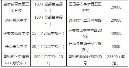 全部自主招生的學(xué)校包括:民辦遵化益眾中學(xué)、遷安弘毅學(xué)校、遷西奇石學(xué)校、金橋玉田分校;自主招生只能錄取未被任何學(xué)校錄取的學(xué)生,自主招生收費應(yīng)在7月25日以后進行。