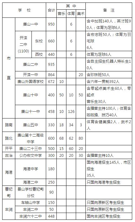 開灤二中東校宏志班招生50人,開灤一中珍珠班招生50人,唐山十中藝術(shù)宏志班招生100人,宏志班、珍珠班均面向原市區(qū)招生。