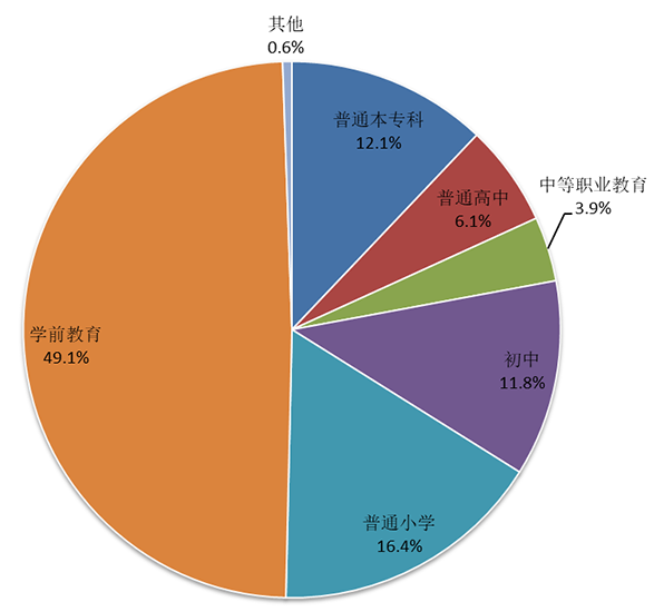 全國(guó)共有各級(jí)各類學(xué)校51.88萬(wàn)所,比上年增加5017所,增長(zhǎng)0.98%;各級(jí)各類學(xué)歷教育在校生2.76億人,比上年增加539.40萬(wàn)人,增長(zhǎng)2.00%;專任教師1672.85萬(wàn)人,比上年增加45.96萬(wàn)人,增長(zhǎng)2.83%。