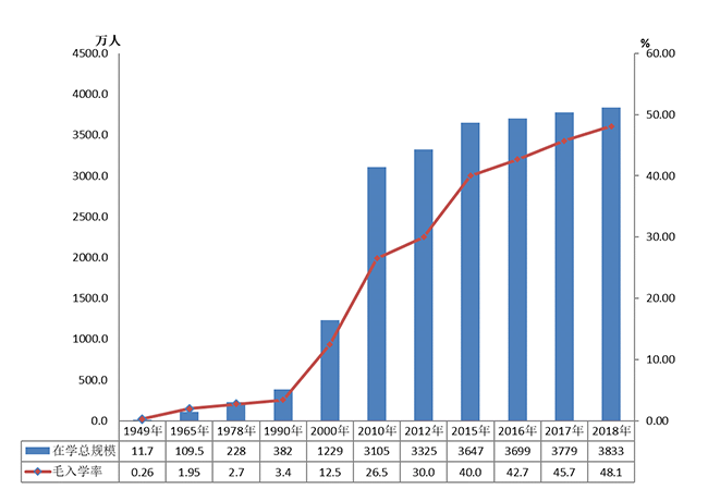 圖5 高等教育在學(xué)規(guī)模和毛入學(xué)率