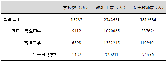 表3 普通高中學(xué)校數(shù)、教職工、專任教師情況