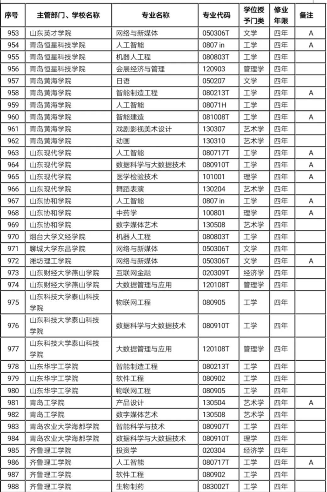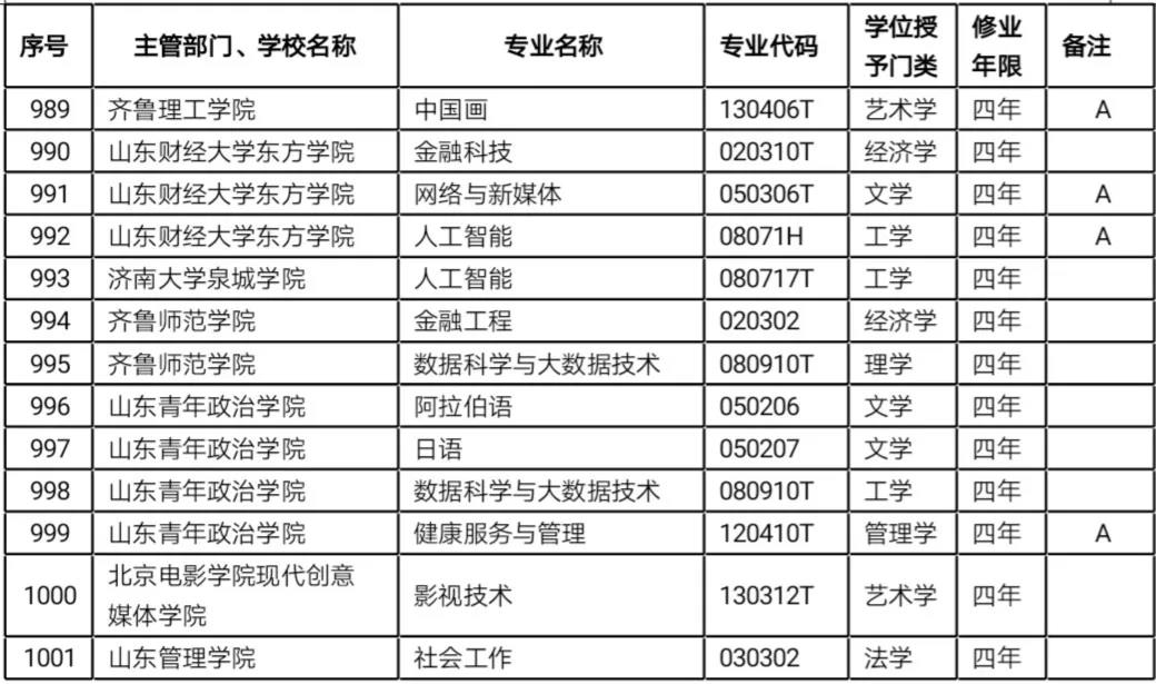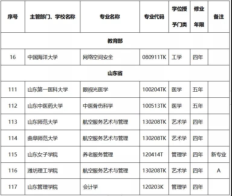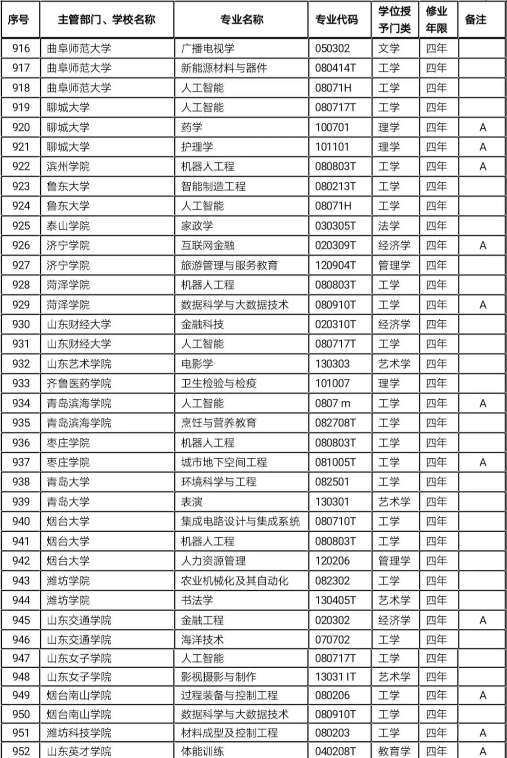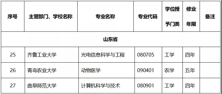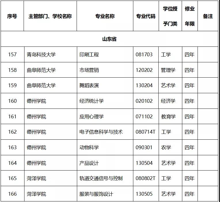 據(jù)統(tǒng)計(jì),此次新增本科專業(yè)名單中,三所駐魯部屬高?!綎|大學(xué)、中國(guó)海洋大學(xué)和中國(guó)石油大學(xué)(華東),新增7個(gè)備案專業(yè)、1個(gè)審批專業(yè);山東省屬高校中,49所高校新增備案本科專業(yè)109個(gè);7所高校各新增審批本科專業(yè)1個(gè);8所高校撤銷本科專業(yè)18個(gè)。此外,3所省屬高校調(diào)整學(xué)位授予門類或修業(yè)年限本科專業(yè)3個(gè)。