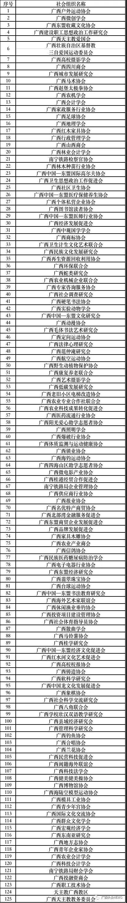 限期整改的部分全區(qū)性社會(huì)團(tuán)體名單(125家)