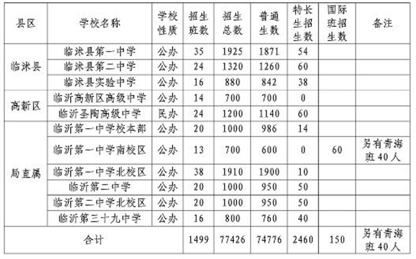 齊魯網(wǎng)·閃電新聞8月1日訊 7月31日,臨沂市教育局發(fā)布了《關(guān)于公布臨沂市2020年高中階段教育招生計(jì)劃的通知》,據(jù)悉,2020年全市高中段教育招生任務(wù)總數(shù)140916人,普通高中學(xué)校招生計(jì)劃數(shù)77426人,中職招生任務(wù)數(shù)63490人。