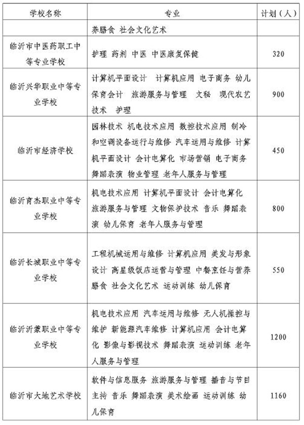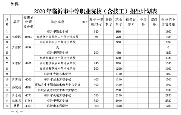 《通知》指出,根據(jù)臨沂市提質(zhì)培優(yōu)建設(shè)職業(yè)教育創(chuàng)新發(fā)展高地的有關(guān)要求,結(jié)合辦學(xué)條件和辦學(xué)情況,省市有關(guān)部門對(duì)高中階段教育的招生計(jì)劃進(jìn)行了審定,全市高中段教育招生任務(wù)總數(shù)140916人,普通高中學(xué)校招生計(jì)劃數(shù)77426人,中職招生任務(wù)數(shù)63490人,其中,職業(yè)院校與本科高校對(duì)口貫通分段培養(yǎng)“3+4”招生計(jì)劃120人,初中起點(diǎn)“五年一貫制”高等職業(yè)教育招生計(jì)劃920人,“三二連讀”高等職業(yè)教育招生計(jì)劃10430人,普通中專招生計(jì)劃2980人,職業(yè)中專招生計(jì)劃21535人,技工院校預(yù)備技師部招生計(jì)劃1000人,中級(jí)部招生計(jì)劃6500 人,高級(jí)部招生計(jì)劃5850人。