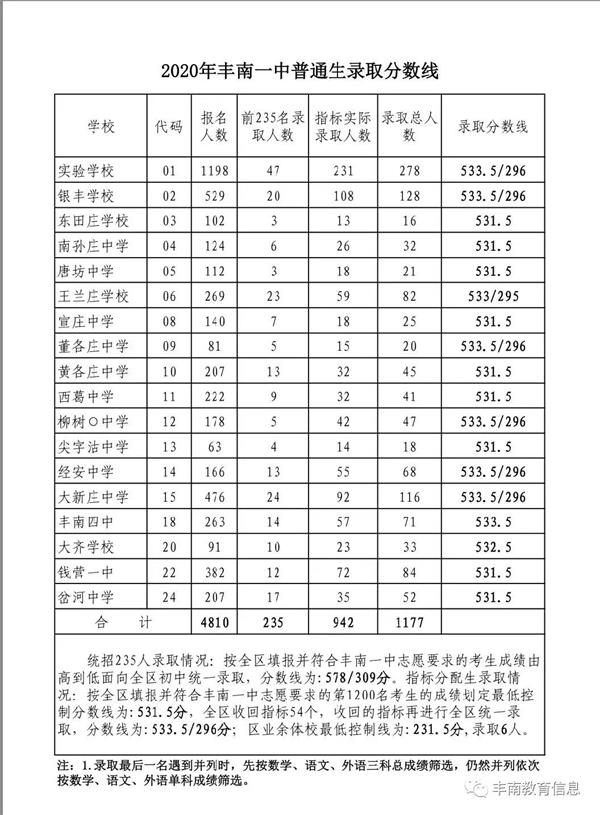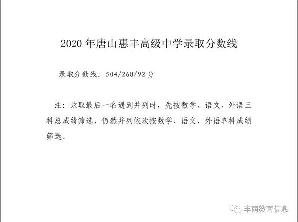 2020年豐南一中、惠豐高中錄取分?jǐn)?shù)線公布!