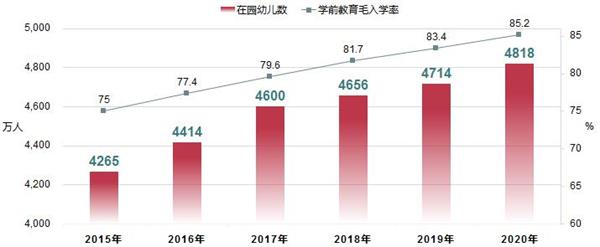 2020年,全國共有幼兒園29.17萬所。入園兒童1791.40萬人,在園幼兒4818.26萬人。其中,普惠性幼兒園在園幼兒4082.83萬人,普惠性幼兒園覆蓋率達(dá)到84.74%。幼兒園共有專任教師291.34萬人。學(xué)前教育毛入學(xué)率85.2%。