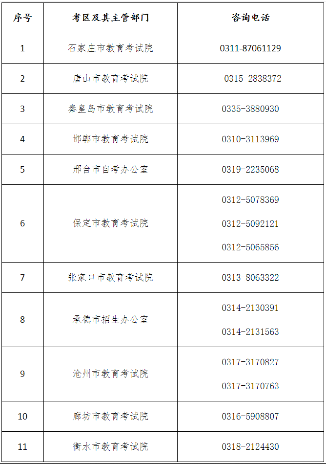 十、各考區(qū)咨詢電話(工作日上午9:00-11:30,下午14:00-17:00)