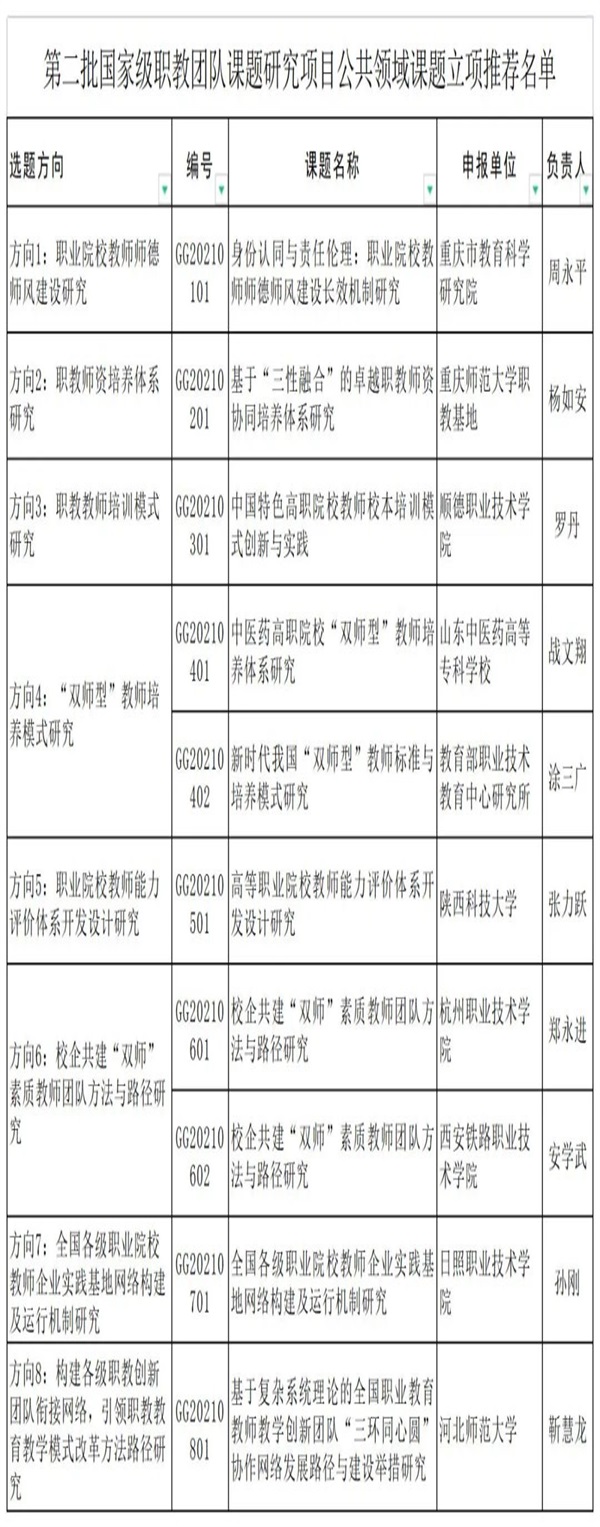 2.第二批國家級職教團隊課題研究項目公共領域課題立項推薦名單