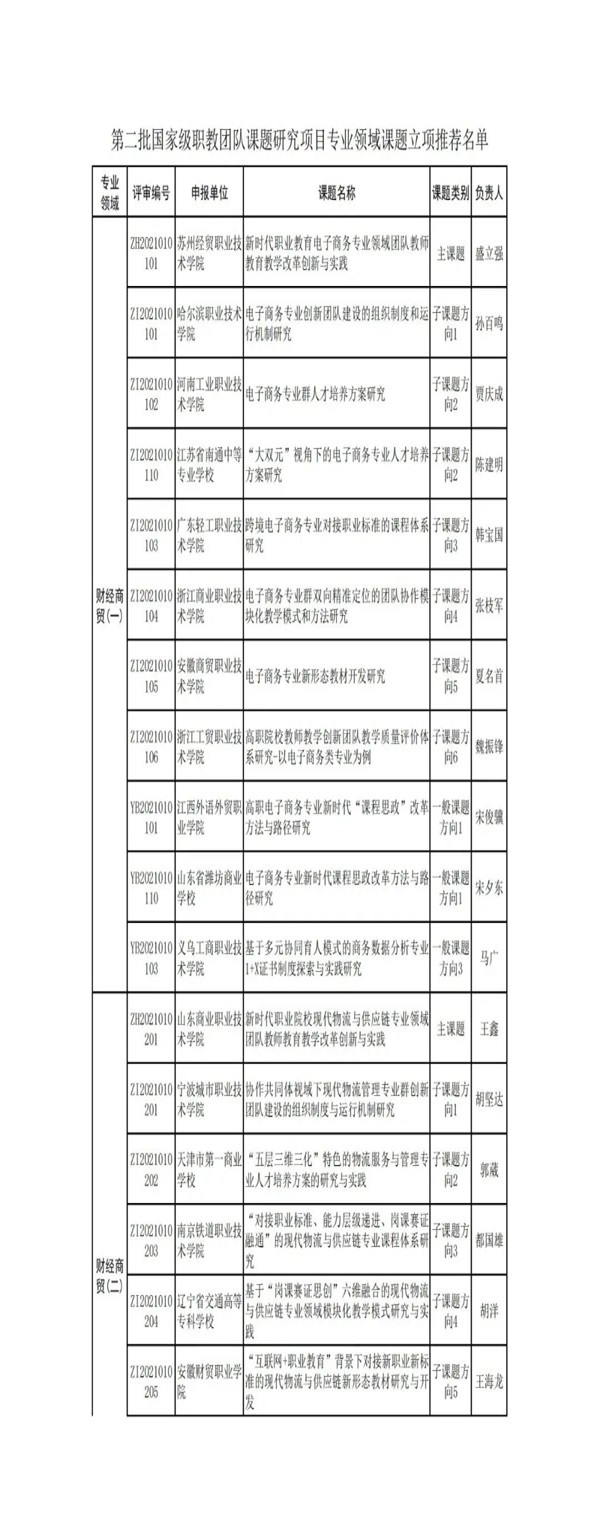 附件:1.第二批國家級職教團隊課題研究項目專業(yè)領域課題立項推薦名單