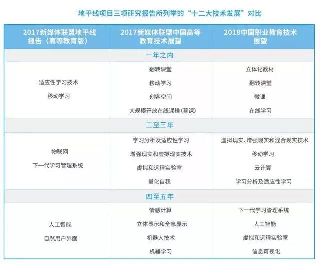 《2018中國職業(yè)教育技術(shù)展望:地平線項(xiàng)目報(bào)告》日前發(fā)布。該報(bào)告的目的在于探究中國在教育技術(shù)方面的新興發(fā)展趨勢,并針對中國職業(yè)教育的具體情況,預(yù)測其潛在影響。