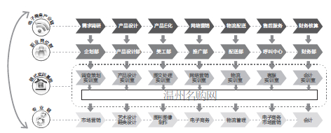 開展人才需求調(diào)研,明確建設(shè)思路。通過對區(qū)域產(chǎn)業(yè)結(jié)構(gòu)、勞動就業(yè)結(jié)構(gòu)、崗位技能結(jié)構(gòu)進行調(diào)研分析,系統(tǒng)梳理學(xué)院已有專業(yè)的分類組合和品牌專業(yè),確定以電子商務(wù)產(chǎn)業(yè)鏈生產(chǎn)經(jīng)營環(huán)節(jié)為主線,探索構(gòu)建包括市場營銷、設(shè)計(藝術(shù)設(shè)計、鞋類設(shè)計)、圖形圖像制作、電子商務(wù)、物流管理、會計等相關(guān)專業(yè)構(gòu)成的專業(yè)鏈,實現(xiàn)關(guān)聯(lián)專業(yè)資源共享、協(xié)同發(fā)展。
