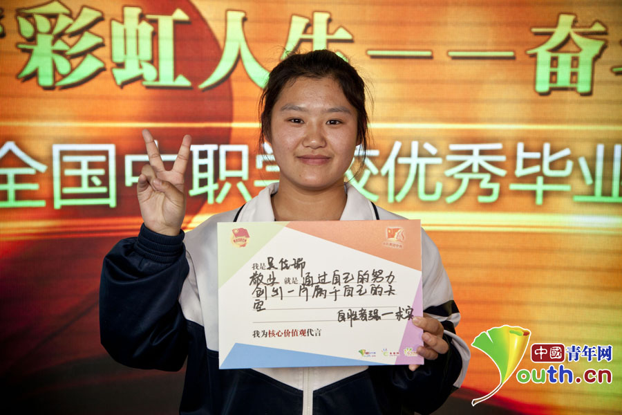 北京市求實(shí)職業(yè)學(xué)校學(xué)生吳佳瑞寫下自己的“價(jià)值觀體”。
